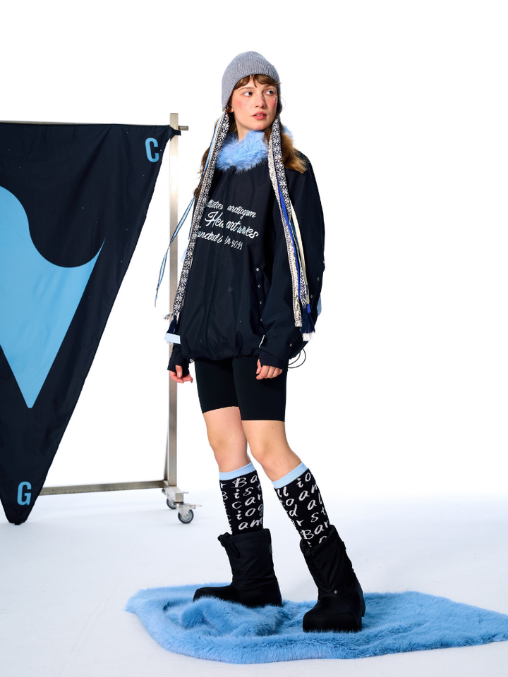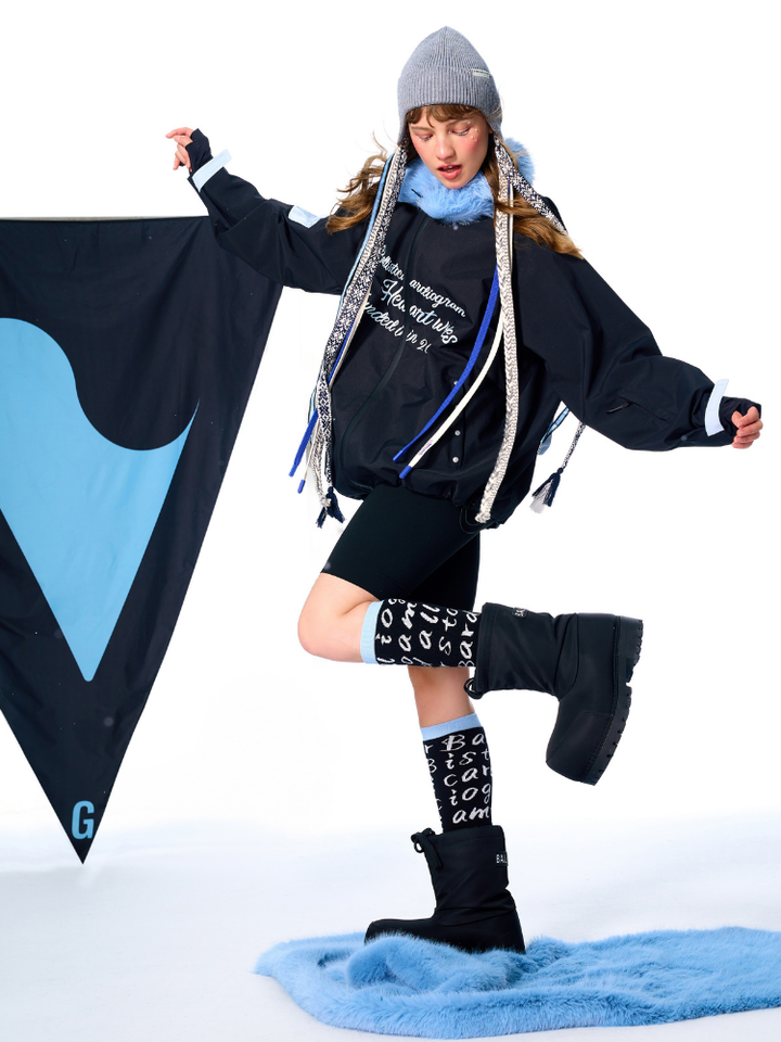 The signature grey palette delivers a cool, fashion-forward tone, while the flowing ski ribbons move in rhythm with your ride, expressing effortless grace and energy. The ear-cover design provides full warmth and a flattering silhouette, and the high-stretch core-spun knit offers a soft, skin-friendly feel. Perfect for elevating your ski or street style, this piece adds a unique contrast that stands out both on and off the slopes.